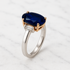 4.63 ct  Oval cut Natural Sapphire beautifully presented with two Baguette diamonds of 0.26 ct in total. Set in 18ct White Gold  ring with Rose Gold.