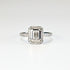 GIA certified 0.62 ct. emerald cut diamond in G colour, VS1 clarity, in bezel set with 0.25ct diamonds on the Halo and shoulders, set in a platinum ring.