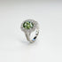 2.28ct oval cut green colour morganite centre stone complemented with 1.12ct diamond halo and set in platinum