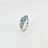 This 18ct white gold blue topaz trilogy features a 1.68ct princess cut and two pear-shaped blue topaz stones, surrounded by a 0.30ct diamond halo. With a total weight of 3.5g, this piece is sure to make a elegant and sophisticated addition to any jewelry collection.