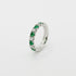 This eternity ring showcases round brilliant cut diamonds and green emerald gems set in platinum, providing a stunning and sophisticated design. Each stone adds a touch of elegance and sparkle, making it a timeless and luxurious choice.