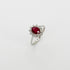 1.06ct oval cut ruby complemented with 0.25ct diamond halo and set in 18ct white gold with total weight 3g