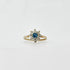 Delicate 9ct yellow gold daisy cluster with sea blue topaz centre stone and diamonds. Total ring weight of 1.85g