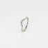 This platinum eternity band features a unique shape and 0.09 carat diamonds, with a total weight of 4 grams.